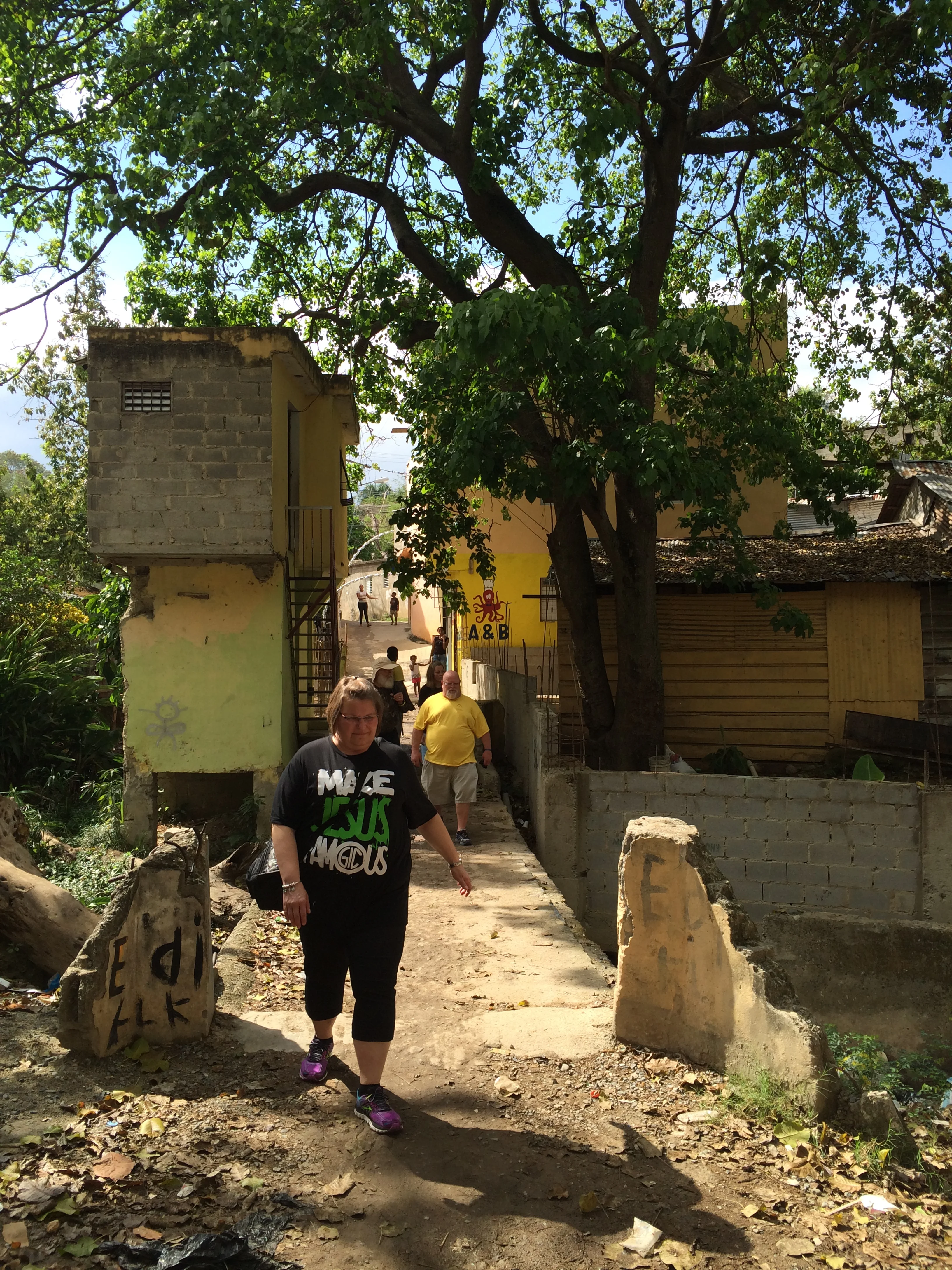 On our prayer walk in Los Rios. The first Haitian Baptist Church in the Dominican (Iglesia) and the surrounding village. So many textures & so many colors - a photographers dream! The smell though... As you can see, trash lined the streets, the streams & the open lots.