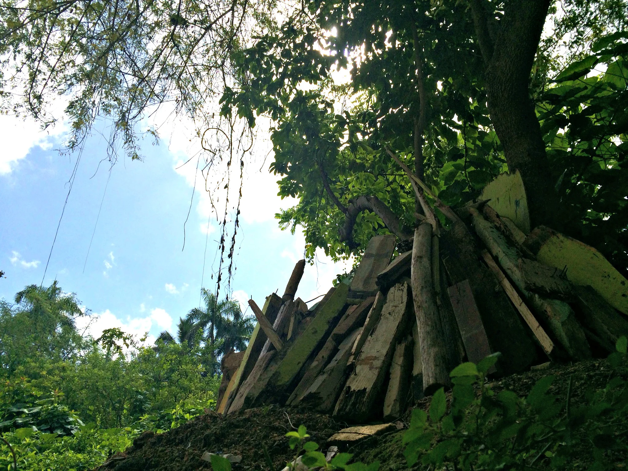 Some of the old plywood that used to be the walls of the church before they rebuilt with cinderblock