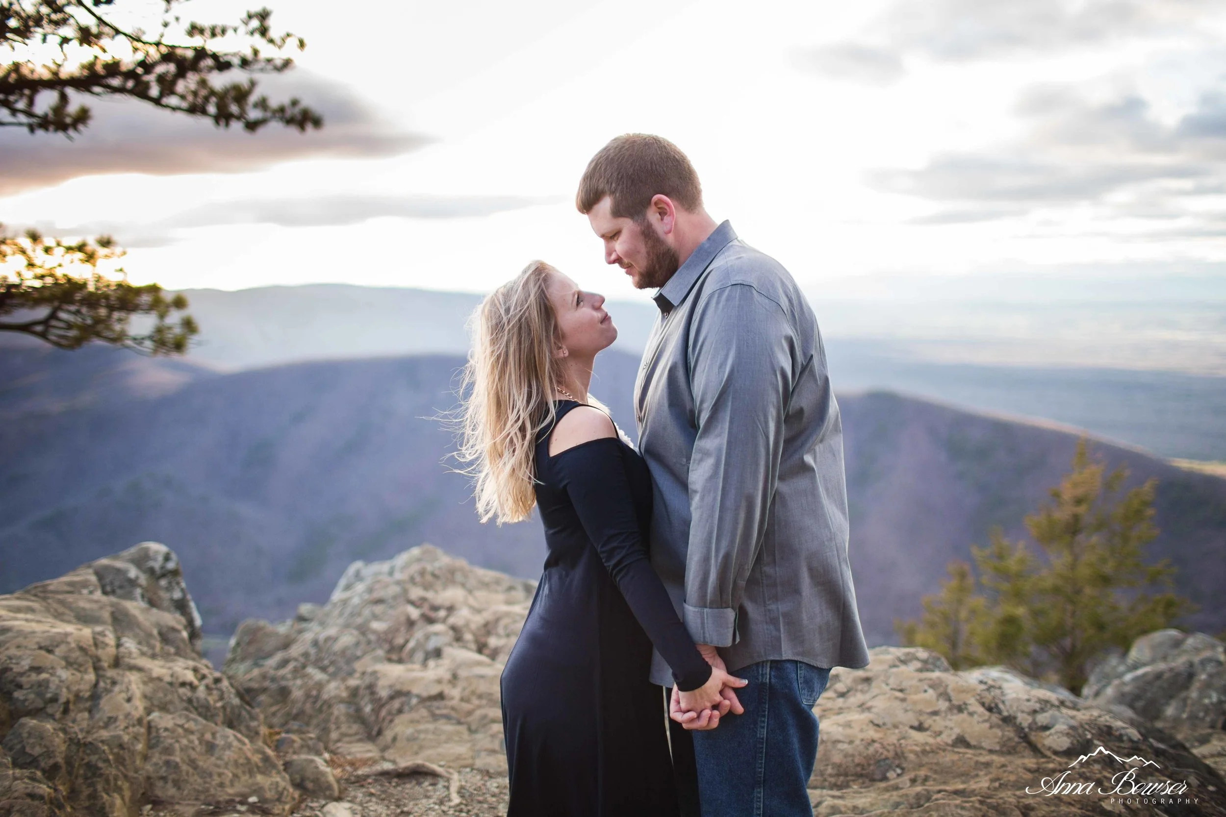 You read that correct and when she broke the news to me via FaceTime, I'm sure my eyes got a little wider than normal. But it was true and it was their story! Chris & Kristi knew they wanted to get married and they had looked at venues, photographers and such but, Chris hadn't popped the question quite yet. That didn't matter though. They were in love, they love their little family and they wanted to document things a little differently. So we set up an engagement shoot together up at Raven's Roost on the Blue Ridge Parkway. Mountains upon mountains, a beaming sunset and a halfway point between the two of us. But the worst was yet to come, so I imagined.... the wind. Kristi was eating her hair for 75% of their engagement shoot and at the end, I feared I didn't get any good photographs. Yes, the scenery was gorgeous and yes they were super patient but, the wind can make or break an image. When I got home and started culling through their images, I was baffled. I've photographed a lot of different scenarios in a lot of different places and this engagement shoot, by far, is one of my favorite accomplishments. Chris & Kristi, congratulations on your engagement. I'm so excited to photograph your journey towards marriage!