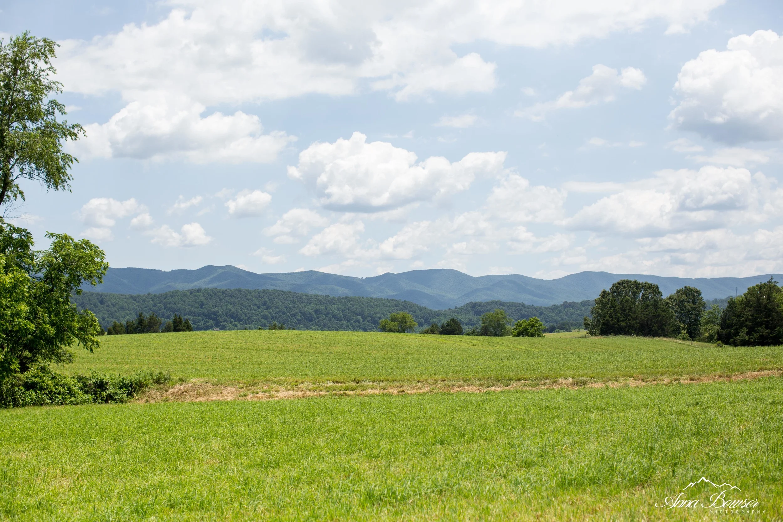 Their wedding day consisted of lots of laughter, bright florals & family. Lyle & his groomsmen were dressed in navy blue suits & cowboy boots! Ashleigh wore a white silk slip covered in a lace overlay dress, complimenting her bridesmaids in blush & rouge. The florals were handmade by an aunt & the details were natural, including moss, deer antlers & tree bark. The weather was warm, sunny & calm. They said their "I Do's" with a Blue Ridge Mountain backdrop & partied under the stars in a white tent with fireworks to conclude. Everything about their big day was perfect. Congratulations Ashleigh & Lyle!